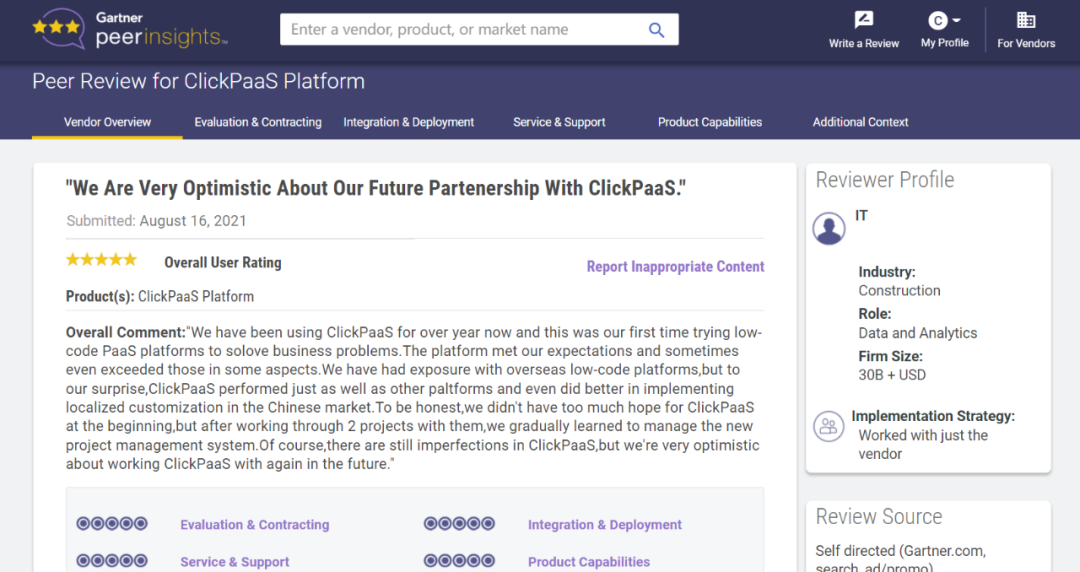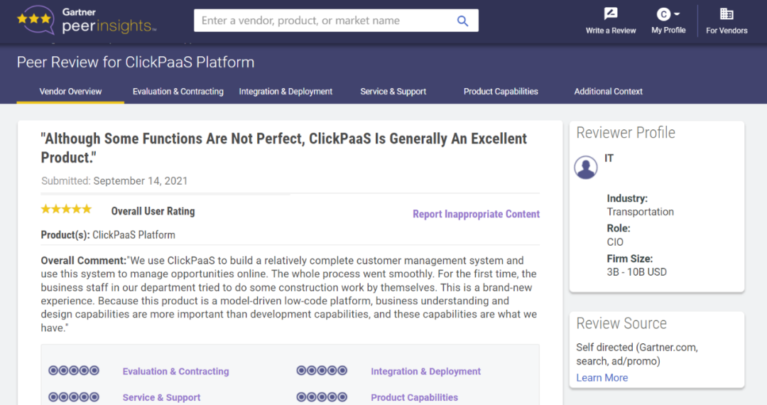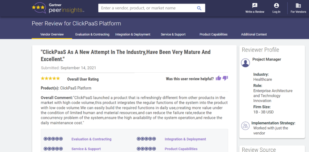 Tips::【Peer Insights】——用户对企业IT产品和服务发布真实评价的平台。。。目前已有355个市场,,,255,000条经过验证的评价。。每一条评价Gartner会针对参评企业营收规模及参评人员信息做验证、、、评价内容做多维核实。。